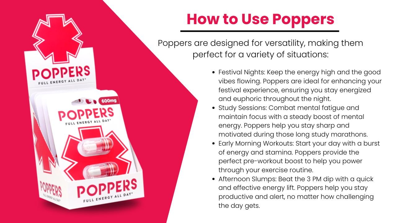 Poppers are often used as a party enhancer or to stay focused during work or study sessions. However, they are not without their own set of risks and potential side effects, which can vary based on factors such as dosage, frequency of use, and individual health conditions.